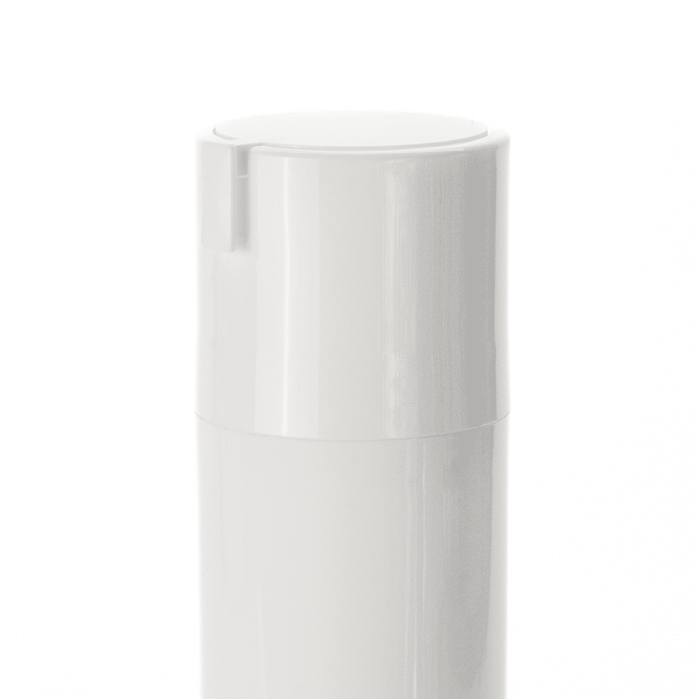 This airless pump packaging has a flush dispenser that integrates perfectly with the container’s silhouette, creating a smooth, continuous surface. This design not only enhances the visual appeal of your product but also improves usability with a large, easy-to-press finger pad. The inclusion of a small plug effectively prevents any unwanted dispensing, ensuring that every application is deliberate and controlled.